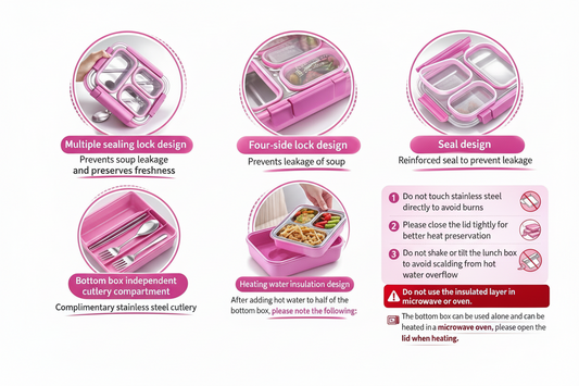 2 Layer Leakproof Bento Lunch Box with Cutlery & Handle- 1550ML (GIBO)