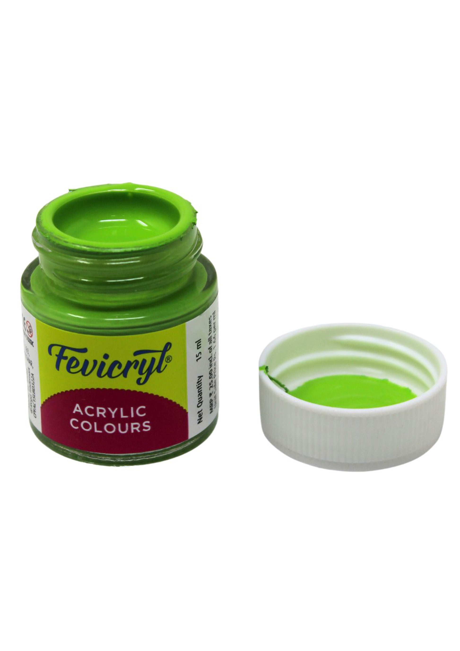 - 1. Material: Liquid. Pack contain 15ml of Fevicryl Acrylic colour.