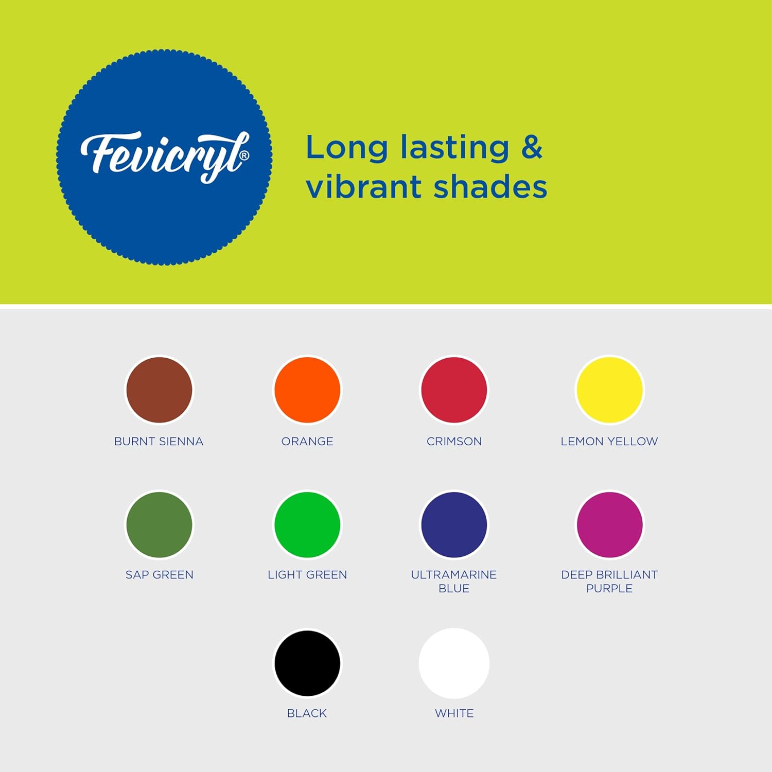 - Multisurface Use - The Fevicryl Acrylic Sunflower Kit comprises of vibrant painting colours and refined shades that work across a wide variety of mediums. Apply these paints to various surfaces like wood, canvas, leather, terracotta and even fabrics.