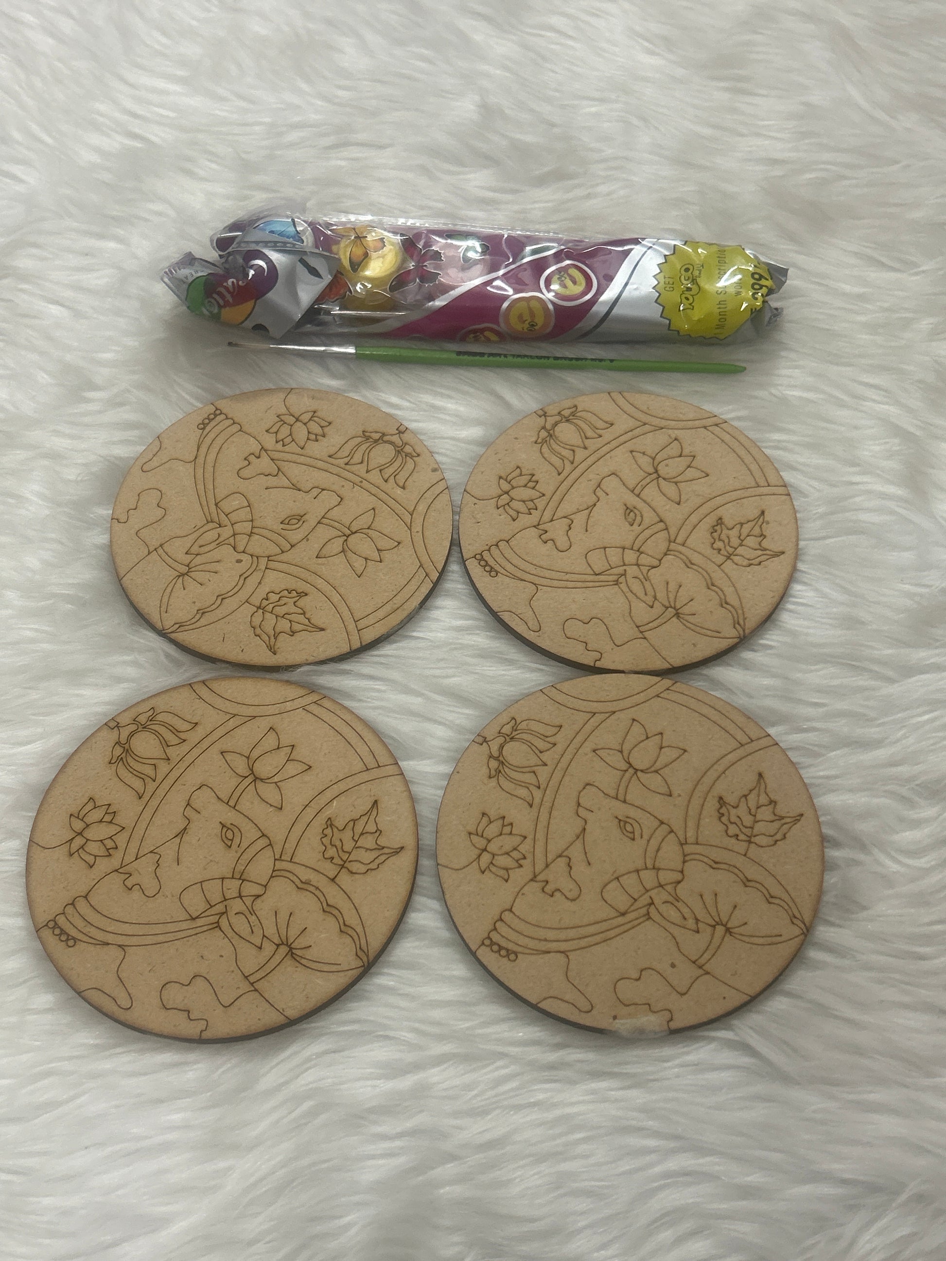 MDF Painting Kit Round Cow- 4Inch, 4Pc Set