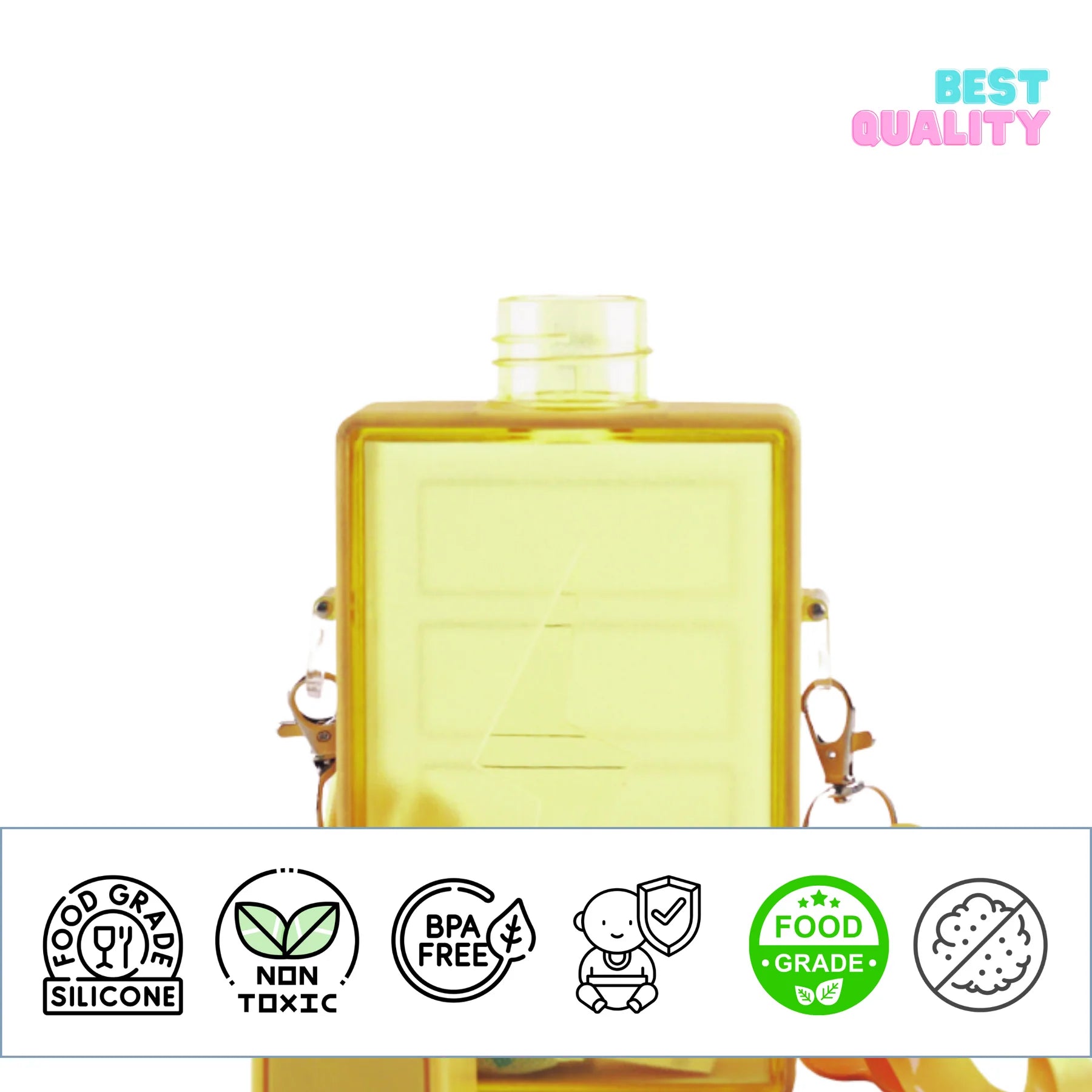 - Water bottle‘s body is made of food-grade PC, the lid is made of food-grade silicone. Height 18cm, width 10cm