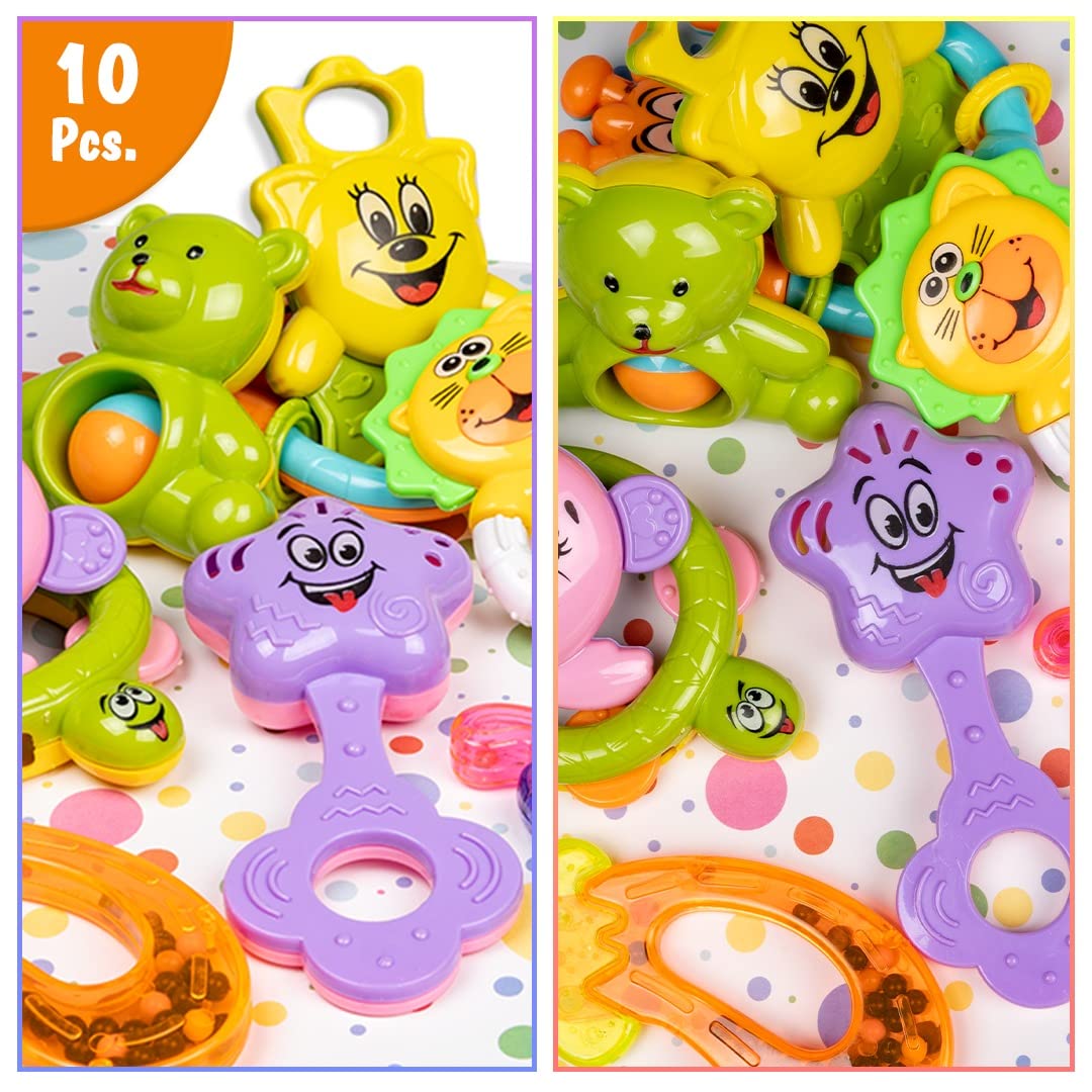 - Perfect Size for Little Hand: The colorful baby rattles are big enough, perfect size for little hands to grab it. Hours of fun with those fun rattles.