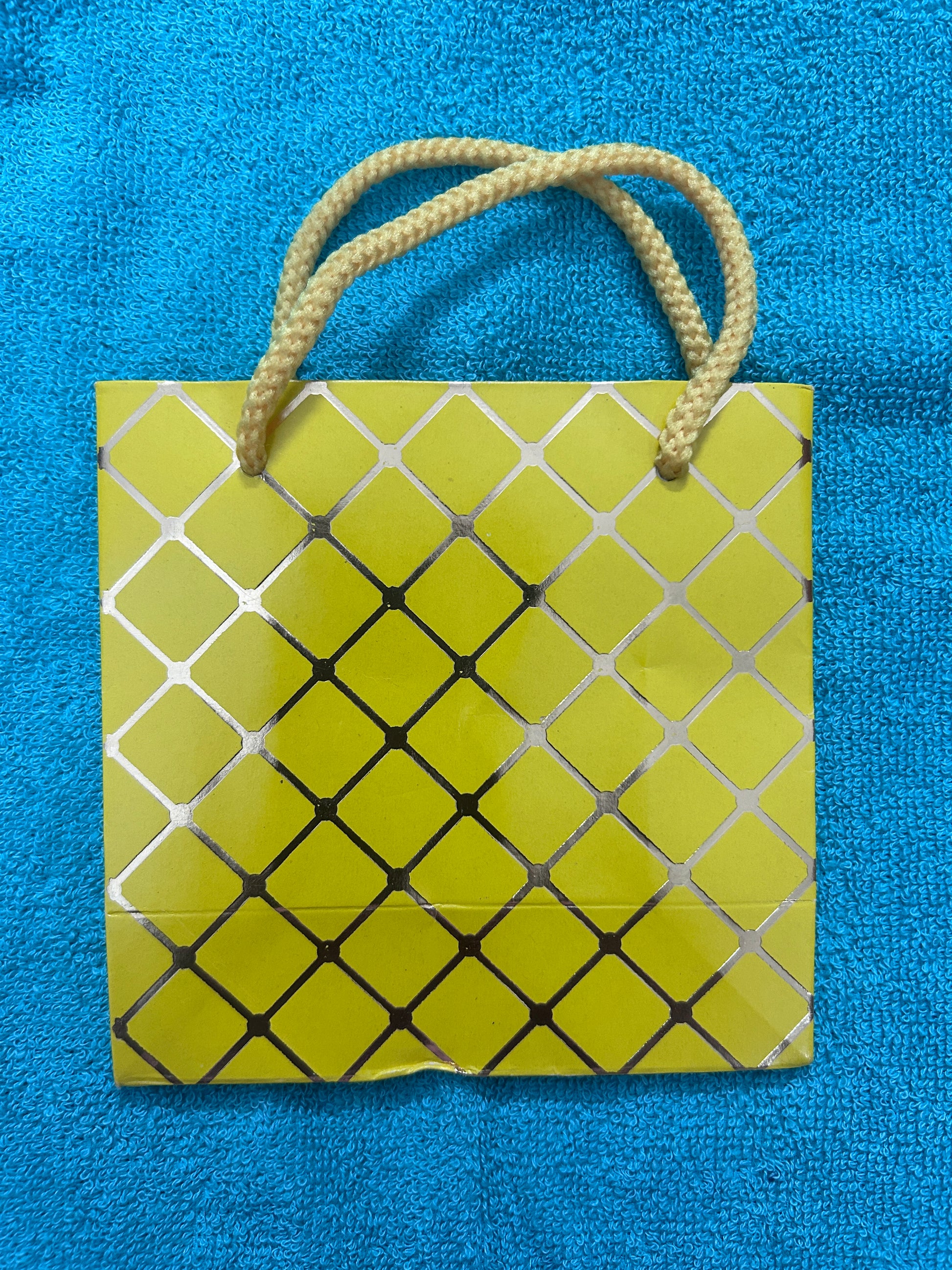 Yellow With Golden Checks Mini Paper Bag 12.5*12.5 cm